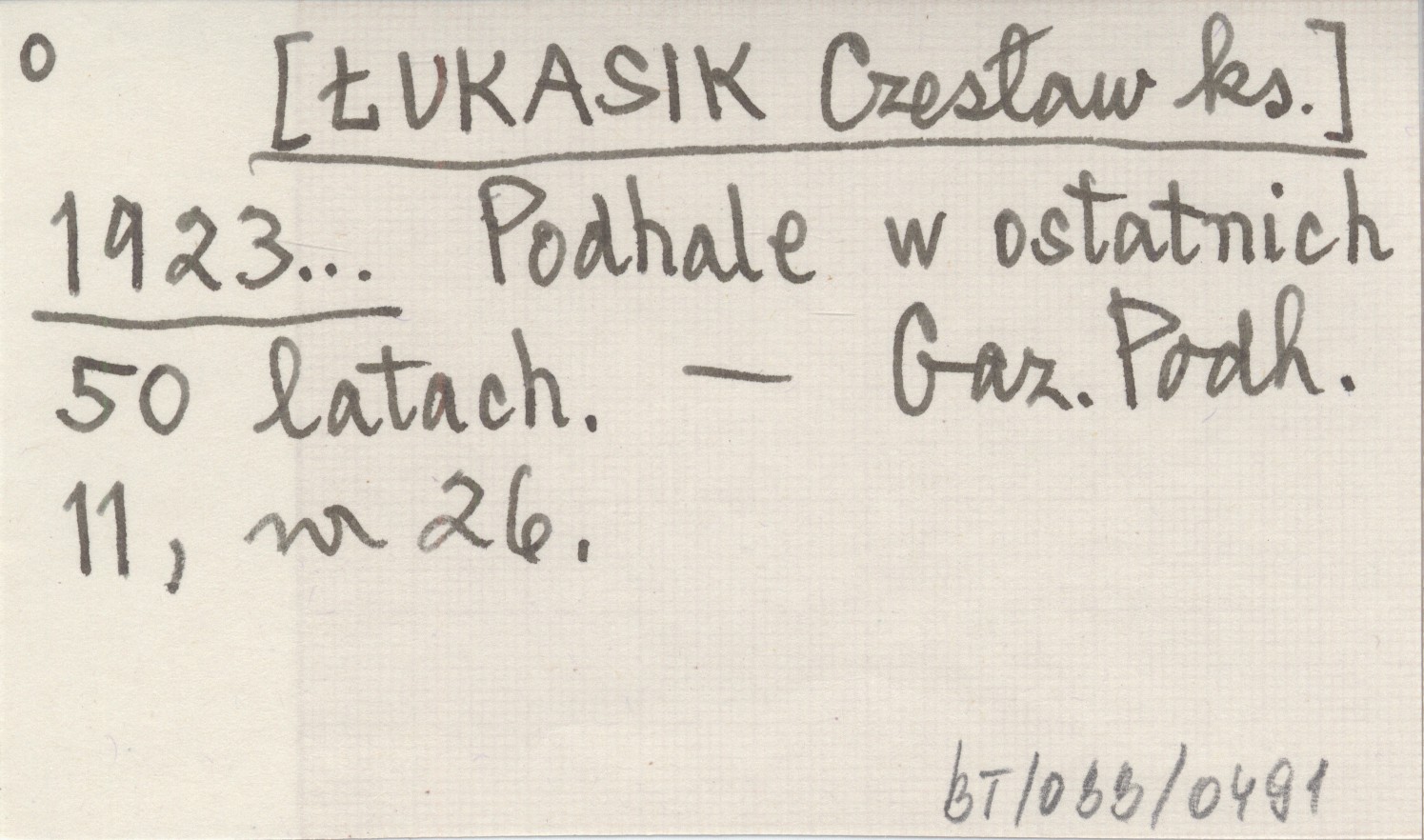 [ŁUKASIK Czesław ks.] 1923... Podhale w ostatnich 50 latach.