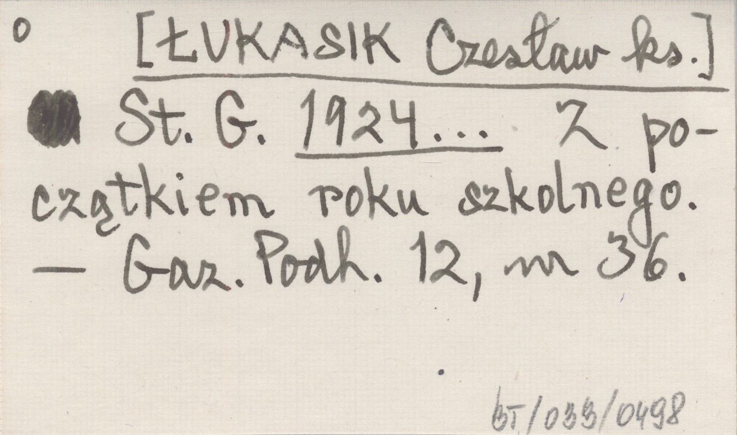 St. G. [ŁUKASIK Czesław ks.] 1924... Z początkiem roku szkolnego.