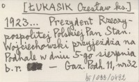 [ŁUKASIK Czesław ks.] 1923... Prezydent Rzeczypospolitej Polskiej Pan Stan. Wojciechowski przyjeżdża na Podhale w dniu 5-go sierpnia b. r.