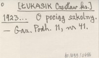 [ŁUKASIK Czesław ks.] 1923... O pociąg szkolny.