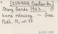 Stary Gazda [ŁUKASIK Czesław ks.] 1923... O kurs rolniczy.