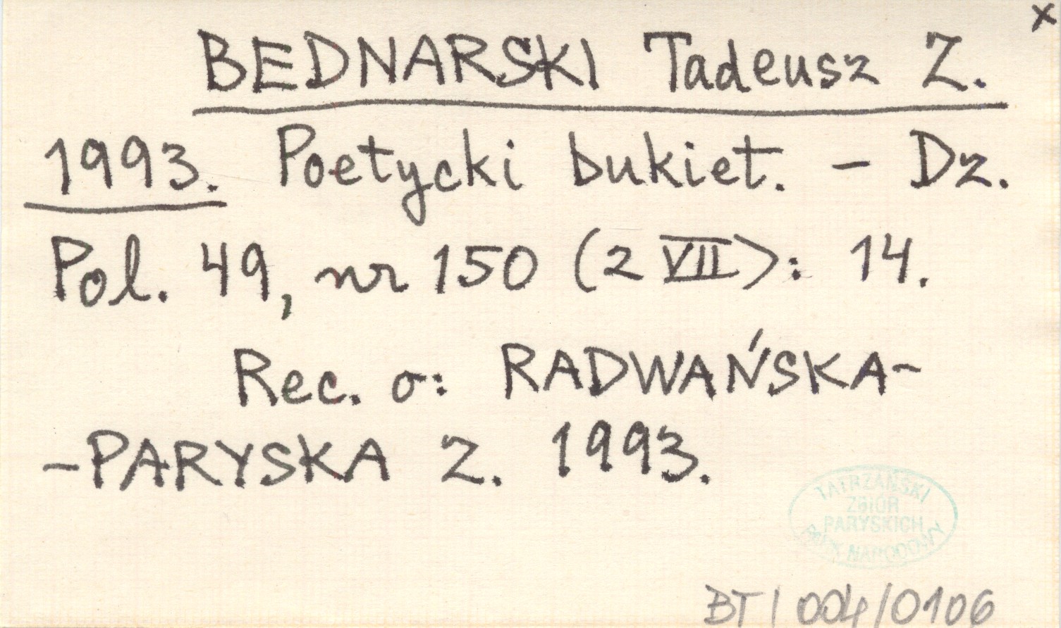 Dziennik Polski, 49, nr 150 (2 VII): 14. REC: RADWAŃSKA-PARYSKA Z. 1993.