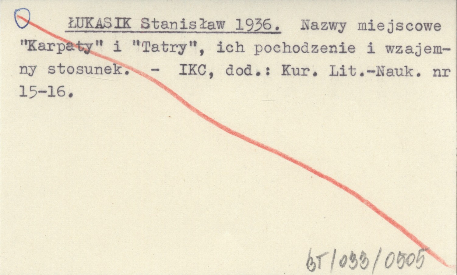ŁUKASIK Stanisław 1936 Nazwy miejscowe "Karpaty" i "Tatry", ich pochodzenie i wzajemny stosunek.
