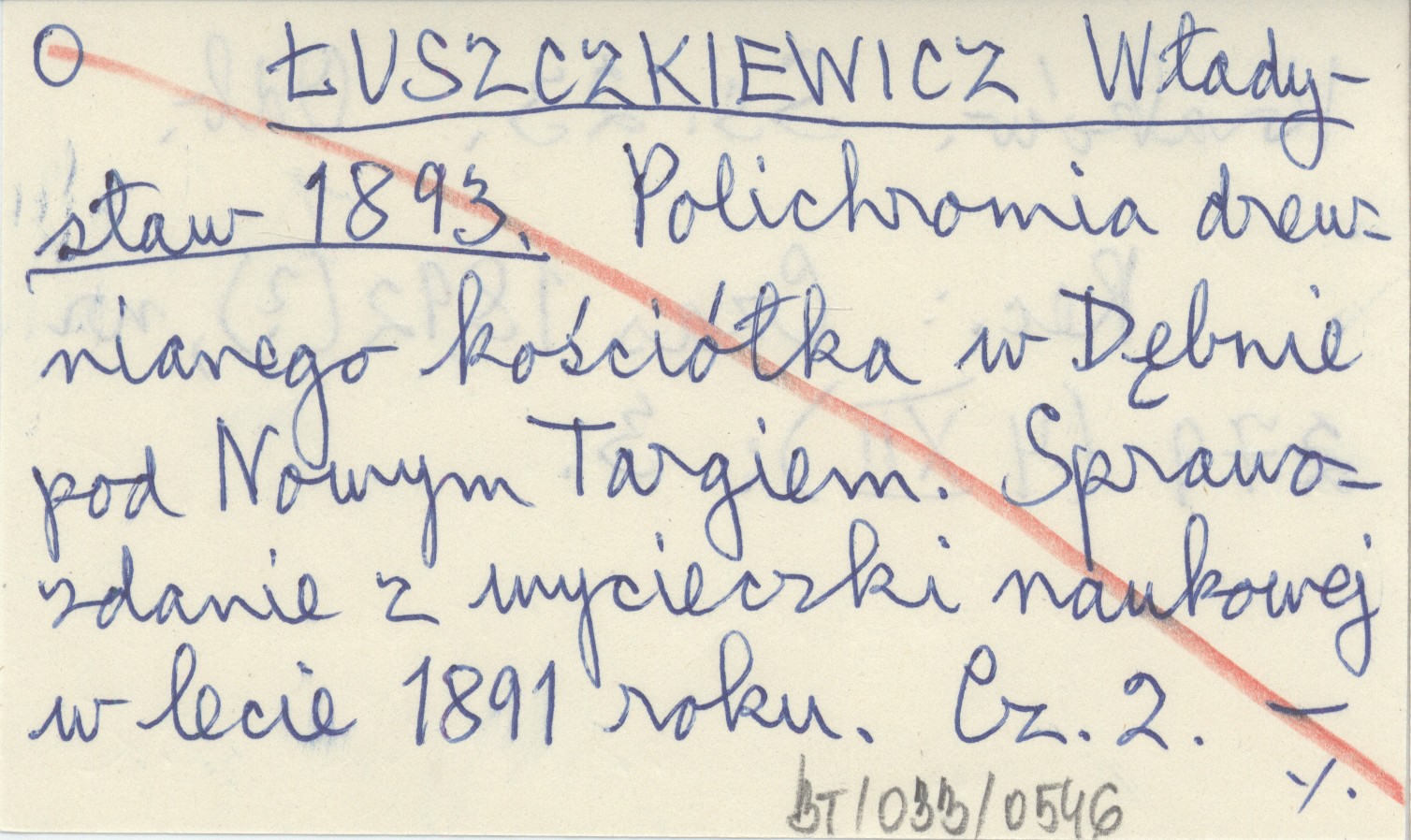 ŁUSZCZKIEWICZ Władysław 1893 Polichromia drewnianego kościółka w Dębnie pod Nowym Targiem. Sprawozdanie z wycieczki naukowej w lecie 1891 roku. Cz. 2.
