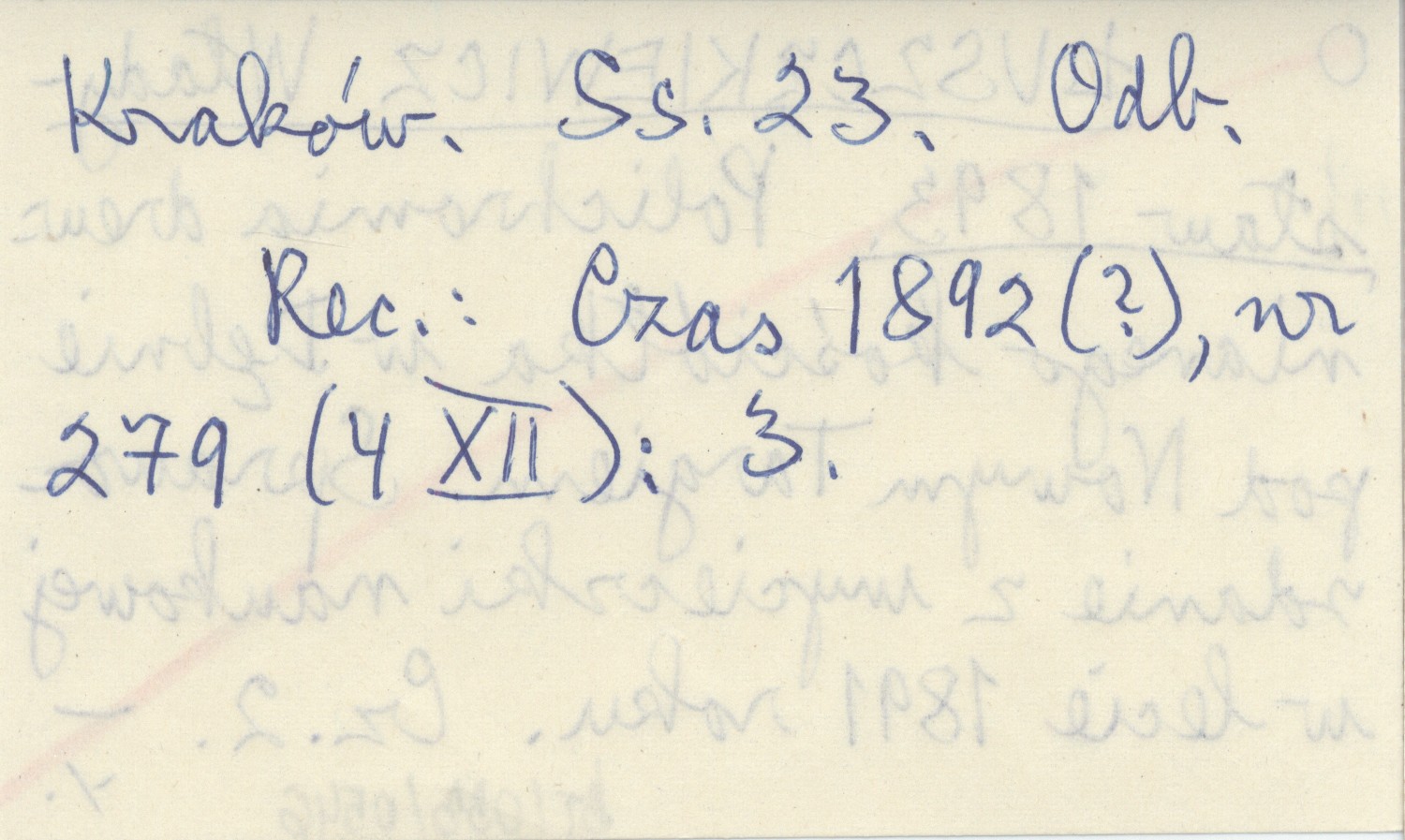 Kraków , 23 s. Odb. REC: Czas 1892 (?), nr 279 (4 XII): 3.