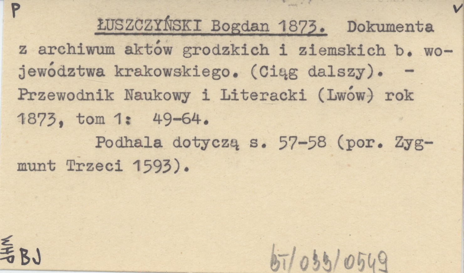 Przewodnik Naukowy i Literacki (Lwów) , T. 1: 49-64. Podhala dotyczą s. 57-58 (por. Zygmunt Trzeci 1593).