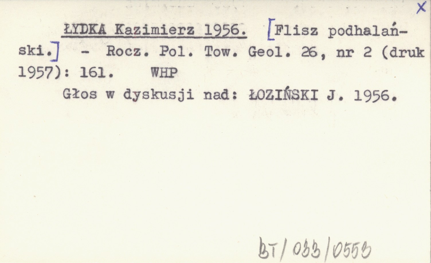 Rocznik Polskiego Towarzystwa Geologicznego, 26, nr 2 (druk 1957): 161. Głos w dyskusji nad: ŁOZIŃSKI J. 1956