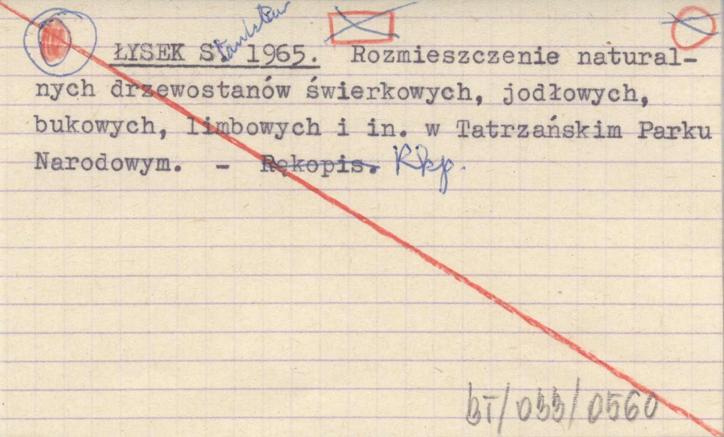 ŁYSEK Stanisław 1965 Rozmieszczenie naturalnych drzewostanów świerkowych, jodłowych, bukowych, limbowych i in. w Tatrzańskim Parku Narodowym.
