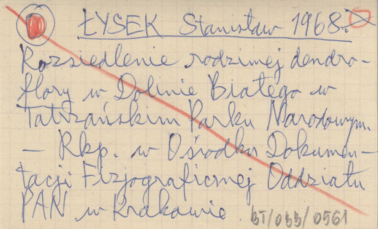 ŁYSEK Stanisław 1968 Rozsiedlenie rodzimej dendroflory w Dolinie Białego w Tatrzańskim Parku Narodowym.