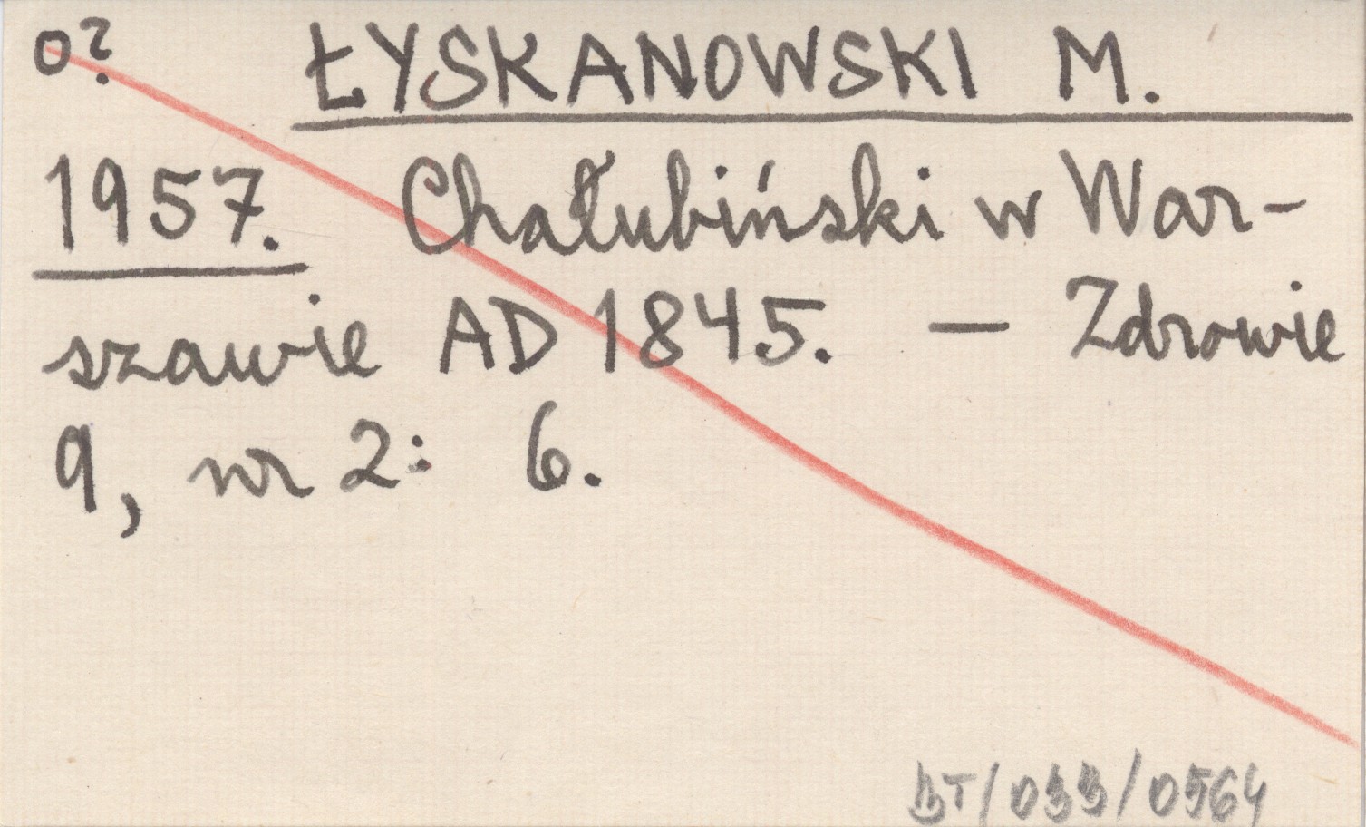 ŁYSKANOWSKI M. 1957 Chałubiński w Warszawie AD 1845.