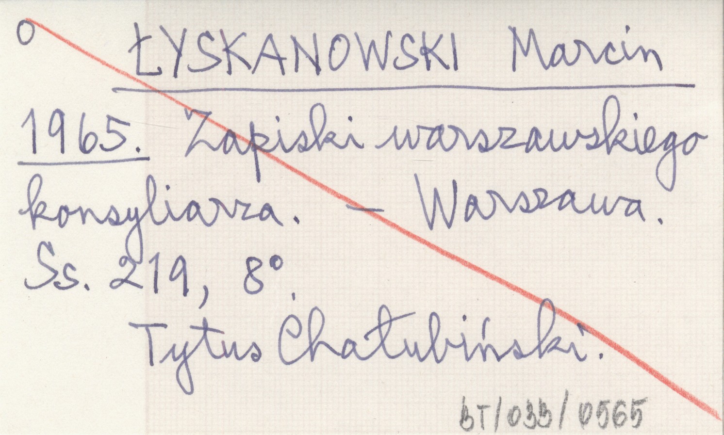 ŁYSKANOWSKI Marcin 1965 Zapiski warszawskiego konsyliarza.