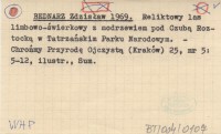 BEDNARZ Zdzisław 1969 Reliktowy las limbowo - świerkowy z modrzewiem pod Czubą Roztocką w Tatrzańskim Parku Narodowym.