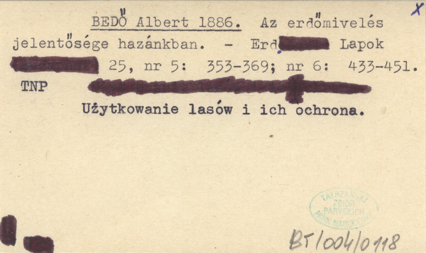 Erdészeti Lapok, 25, nr 5: 353-369 ; nr 6: 433-451. Użytkowanie lasów i ich ochrona.