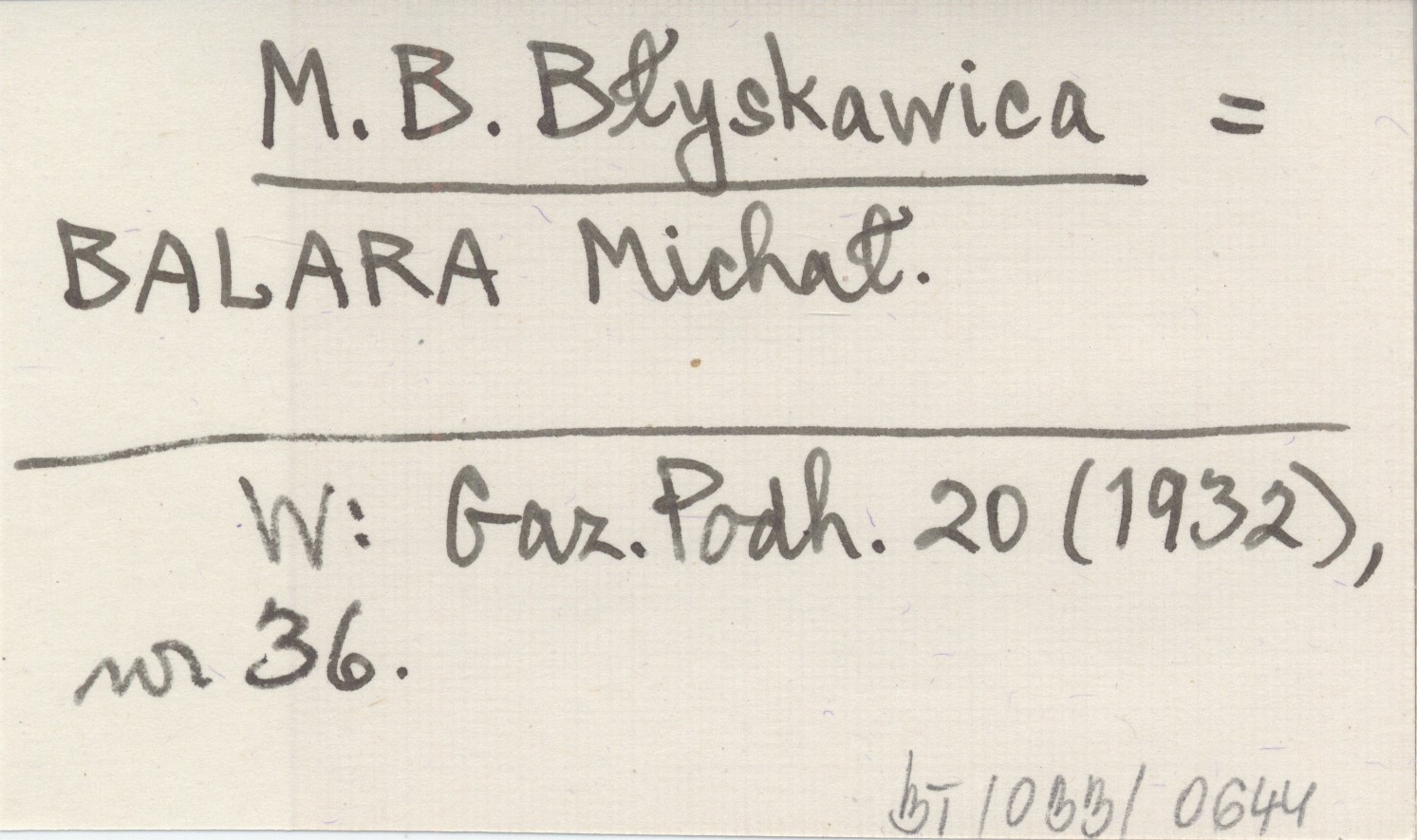 M. B. Błyskawica BALARA Michał Gazeta Podhalańska 20 (1932), nr 36.