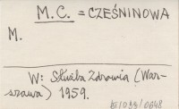 M. C. CZEŚNINOWA M. Służba Zdrowia (Warszawa) 1959.