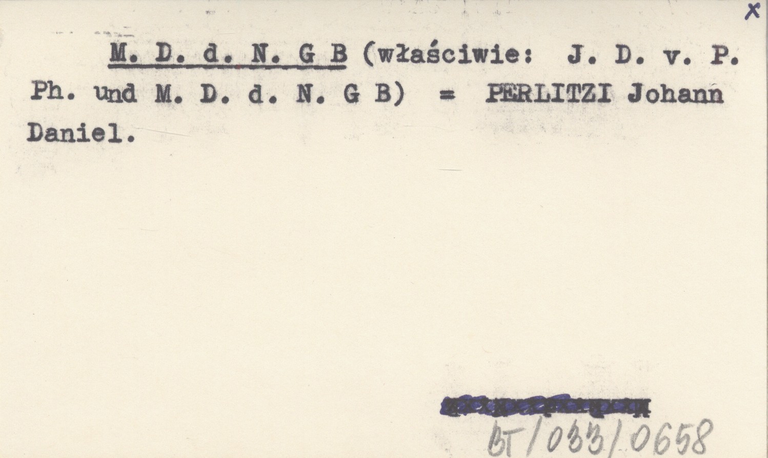 M. D. d. N. G B PERLITZI Johann Daniel (właściwie: J. D. v. P. Ph. und M. D. d. N. G B)
