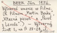 BEER Ján 1956 Výtvarné umenie vo filme. (K filmom "Martin Benka", "Vítazná pieseň" a "Pavel z Levoče").