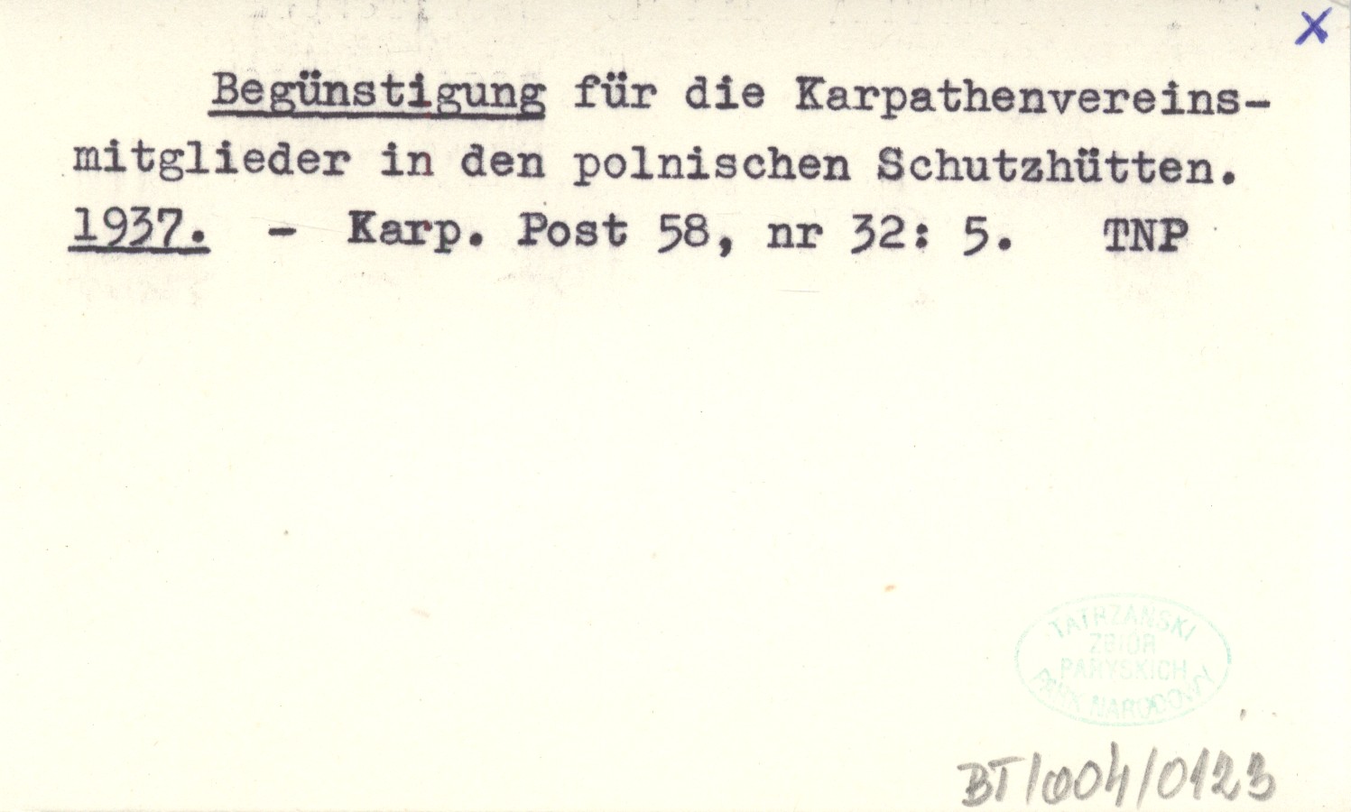 Begünstigung für die Karpathenvereins-mitglieder in den polnischen Schutzhütten. 1937
