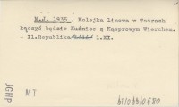 M. J. 1935 Kolejka linowa w Tatrach łączyć będzie Kuźnice z Kasprowym Wierchem.