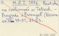 M. J. Z. 1876 Rzut oka na roślinność w Tatrach.