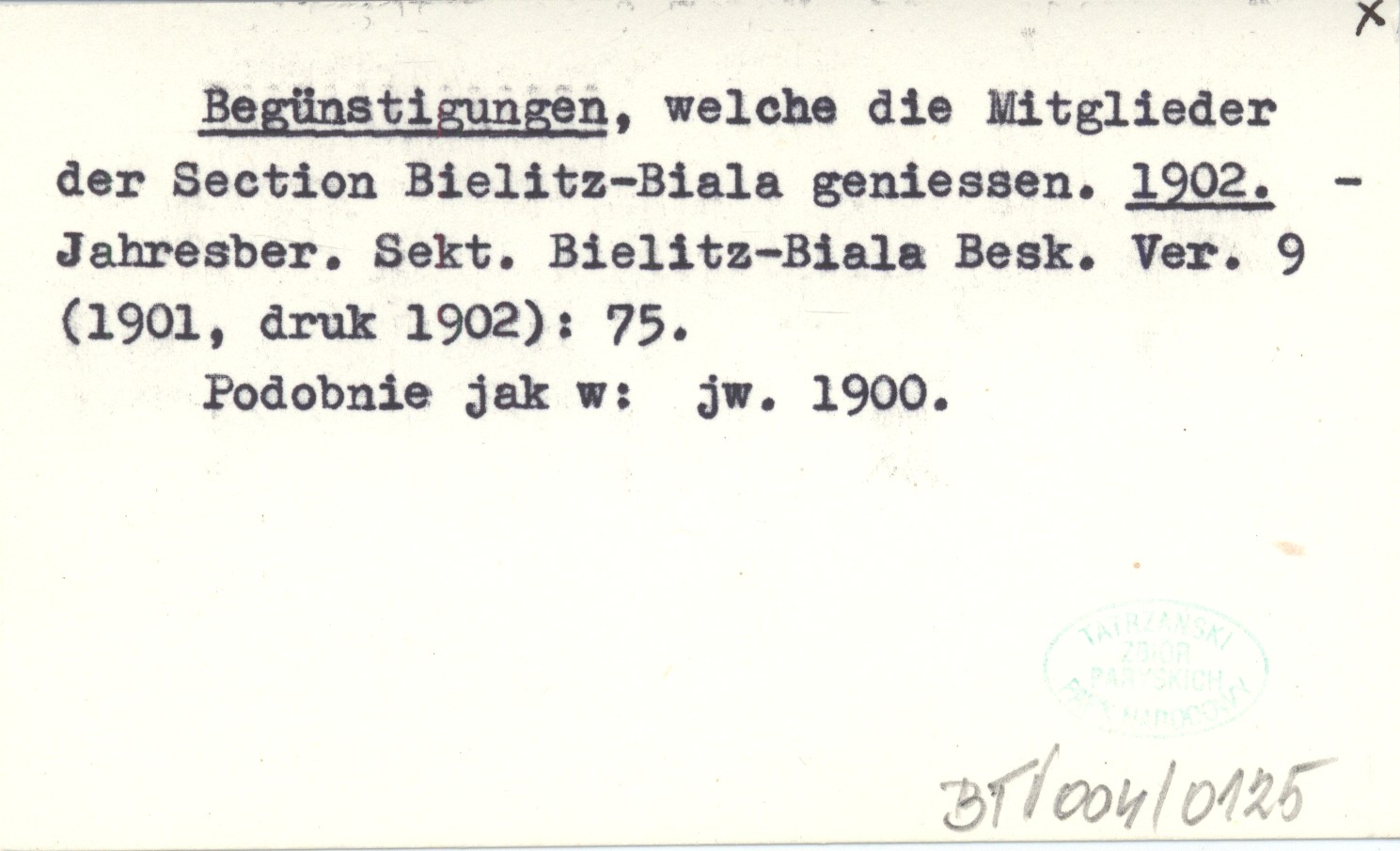 Begünstigungen, welche die Mitglieder der Section Bielitz-Biala geniessen. 1902