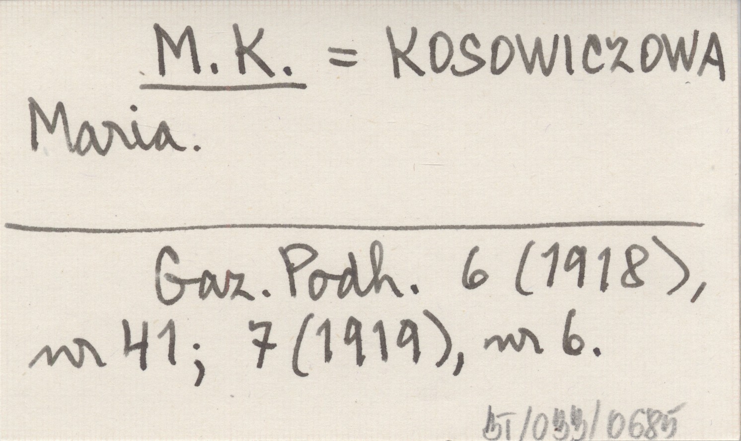 M. K. KOSOWICZOWA Maria Gazeta Podhalańska 6 (1918), nr 41 ; 7 (1919), nr 6.