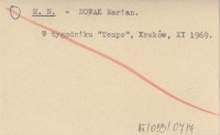 M. N. NOWAK Marian Tempo (Kraków) XI 1969.