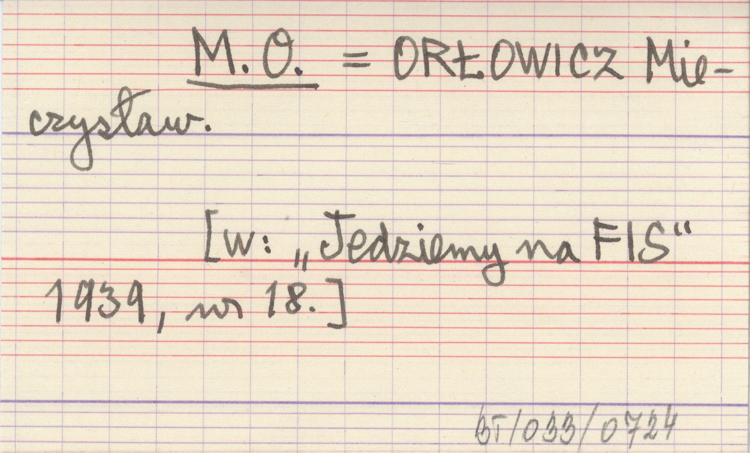 M. O. ORŁOWICZ Mieczysław Jedziemy na FIS 1939, nr 18.