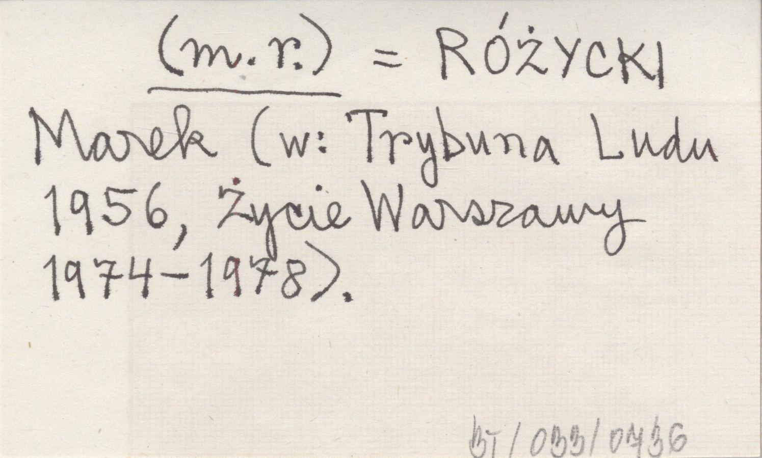 (m. r.) RÓŻYCKI Marek w: Trybuna Ludu 1956, Życie Warszawy 1974-1978.