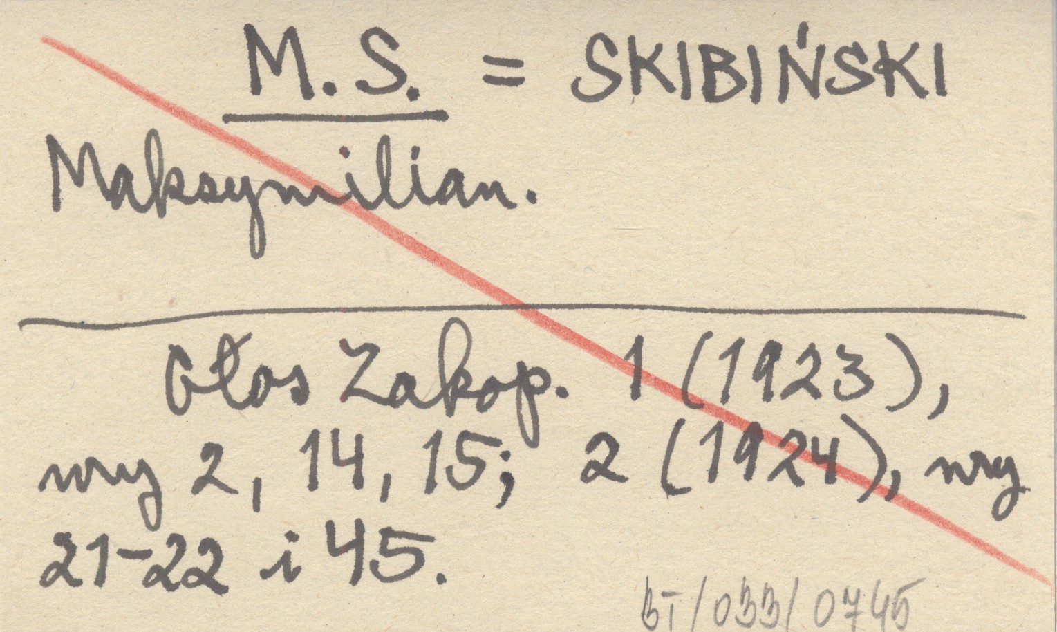M. S. SKIBIŃSKI Maksymilian Głos Zakopiański 1 (1923), nr 2, 14-15 ; 2 (1924), nr 21-22, 45.