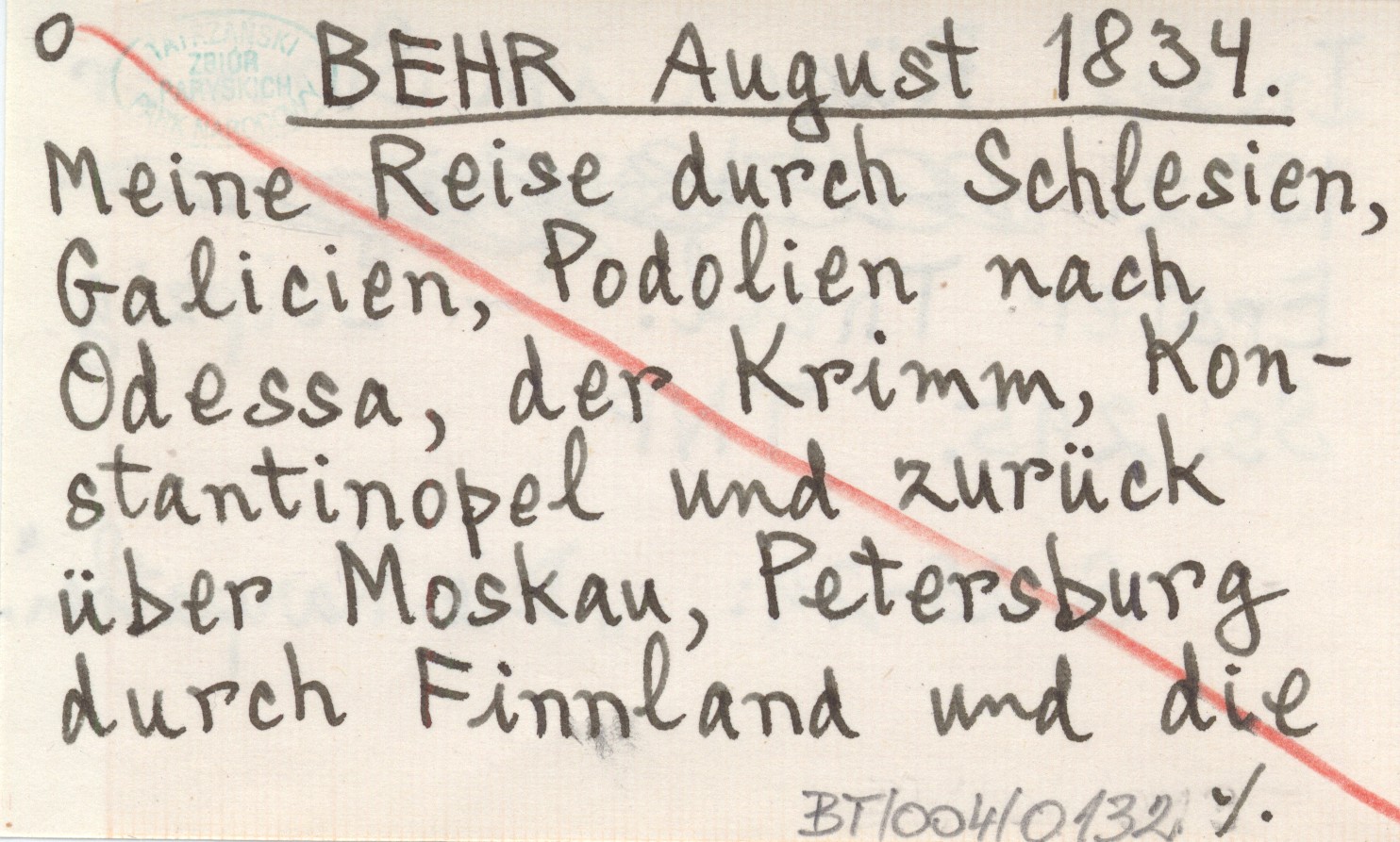 BEHR August 1834 Meine Reise durch Schlesien, Galicien, Podolien nach Odessa, der Krimm, Konstantinopel und zurück über Moskau, Petersburg durch Finnland und die Insel Rügen im Sommer 1832.