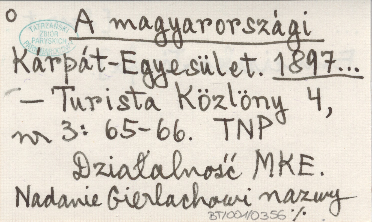 Turista Közlöny, 4, nr 3: 65-66. Działalność MKE. Nadanie Gierlachowi nazwy ... [Szczyt Franciszka Józefa].