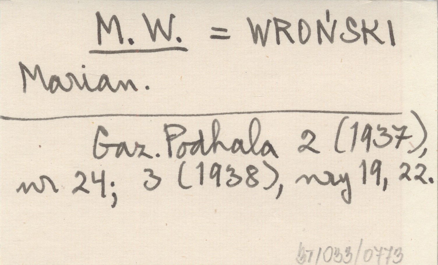 M. W. WROŃSKI Marian Gazeta Podhala 2 (1937), nr 24 ; 3 (1938), nr 19, 22.