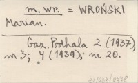 m. wr. WROŃSKI Marian Gazeta Podhala 2 (1937), nr 3 ; 4 (1939), nr 20.