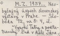 M. Z. 1957... Neobyčajný úspech slovenskej výstavy v Prahe.