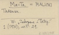 Ma-Ta. MALICKI Tadeusz Zakopane i Tatry 1 (1931), nr 4: 29.