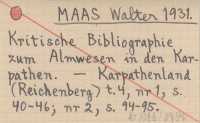 MAAS Walter 1931 Kritische Bibliographie zum Almwesen in den Karpathen.