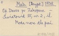 Mab. 1938 Od Davos po Zakopane.