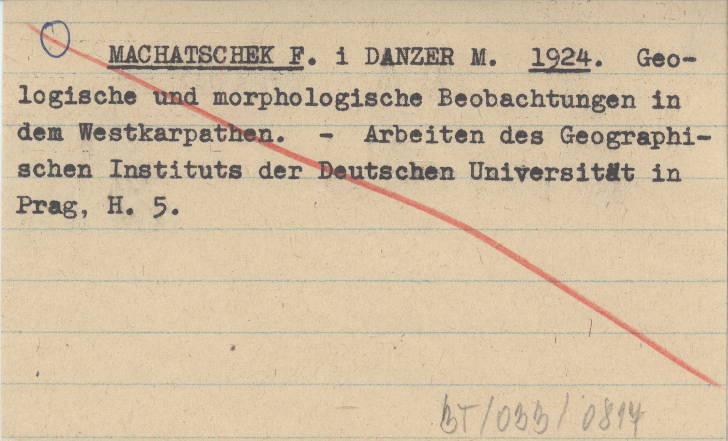 MACHATSCHEK F. DANZER, M. ; 1924 Geologische und morphologische Beobachtungen in dem Westkarpathen.