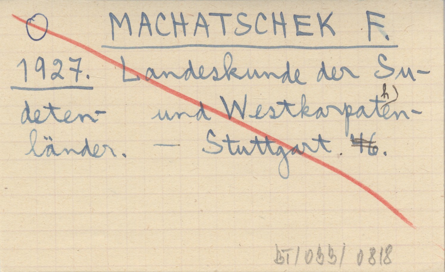 MACHATSCHEK F. 1927 Landeskunde der Sudeten- und Westkarpathenländer.