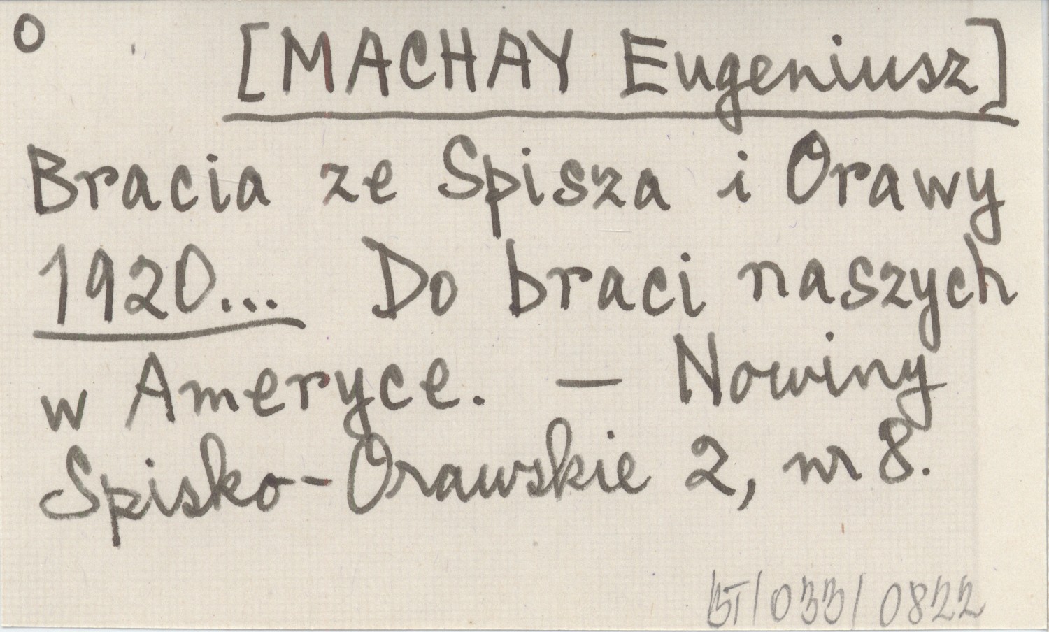 Bracia ze Spisza i Orawy [MACHAY Eugeniusz] 1920... Do braci naszych w Ameryce.