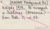 Ksiądz [MACHAY Ferdynand ks.] 1914 Po missyach w Jabłonce. (Wrażenia).