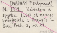 N. [MACHAY Ferdynand] 1914 Kalendorz a spyrka. (List od nasego przyjociela z Orawy).