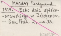 MACHAY Ferdynand 1914 Echo dnia spisko-orawskiego w Zakopanem.