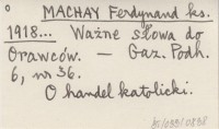 MACHAY Ferdynand ks. 1918... Ważne słowa do Orawców.