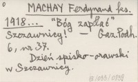 MACHAY Ferdynand ks. 1918... "Bóg zapłać" Szczawnicy!