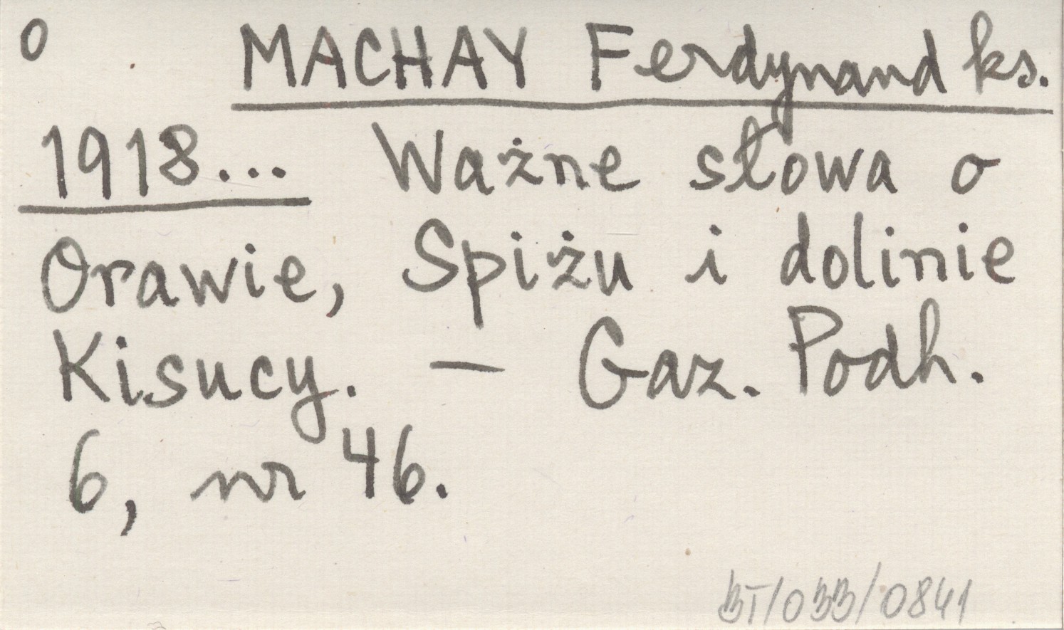 MACHAY Ferdynand ks. 1918... Ważne słowa o Orawie, Spiżu i dolinie Kisucy.