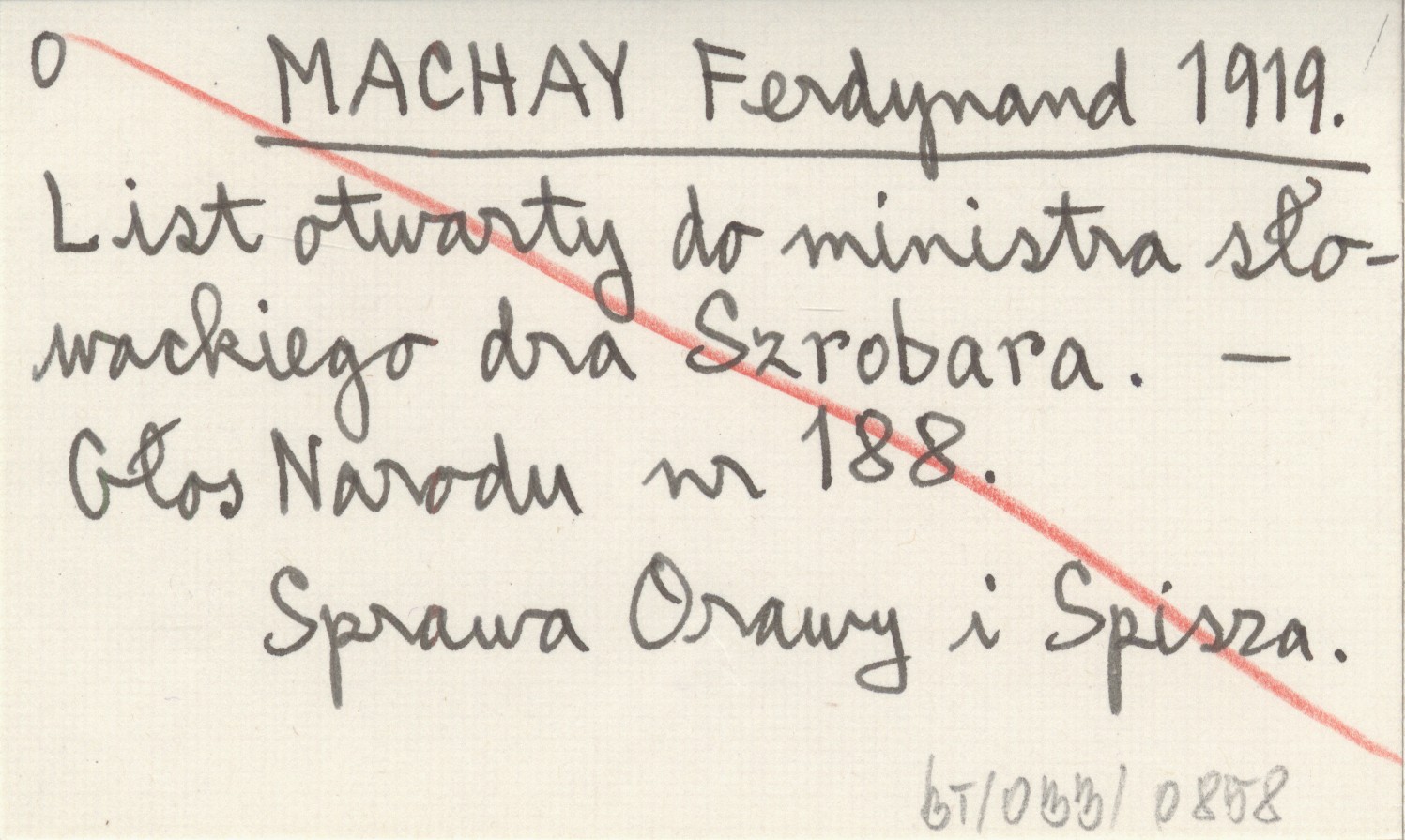 MACHAY Ferdynand 1919 List otwarty do ministra słowackiego dra Szrobara.