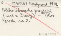 MACHAY Ferdynand 1919 Polsko-słowacka przyjaźń. (List z Orawy).