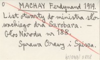 MACHAY Ferdynand 1919 List otwarty do ministra słowackiego dra Szrobara.
